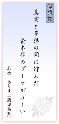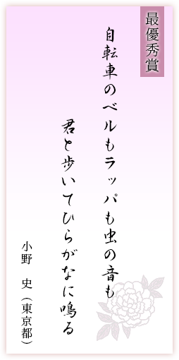 - テーマは自由詠・題詠(恋の歌・愛の歌)どちらか一首をお選びください。