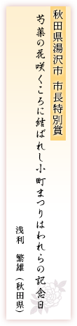 今年で14回目を迎えた『詩の街ゆざわ』にご協力いただいている企業/団体のご紹介です。秋田湯沢を代表する商品、活動ばかりなので是非ご覧いただければ幸いです。